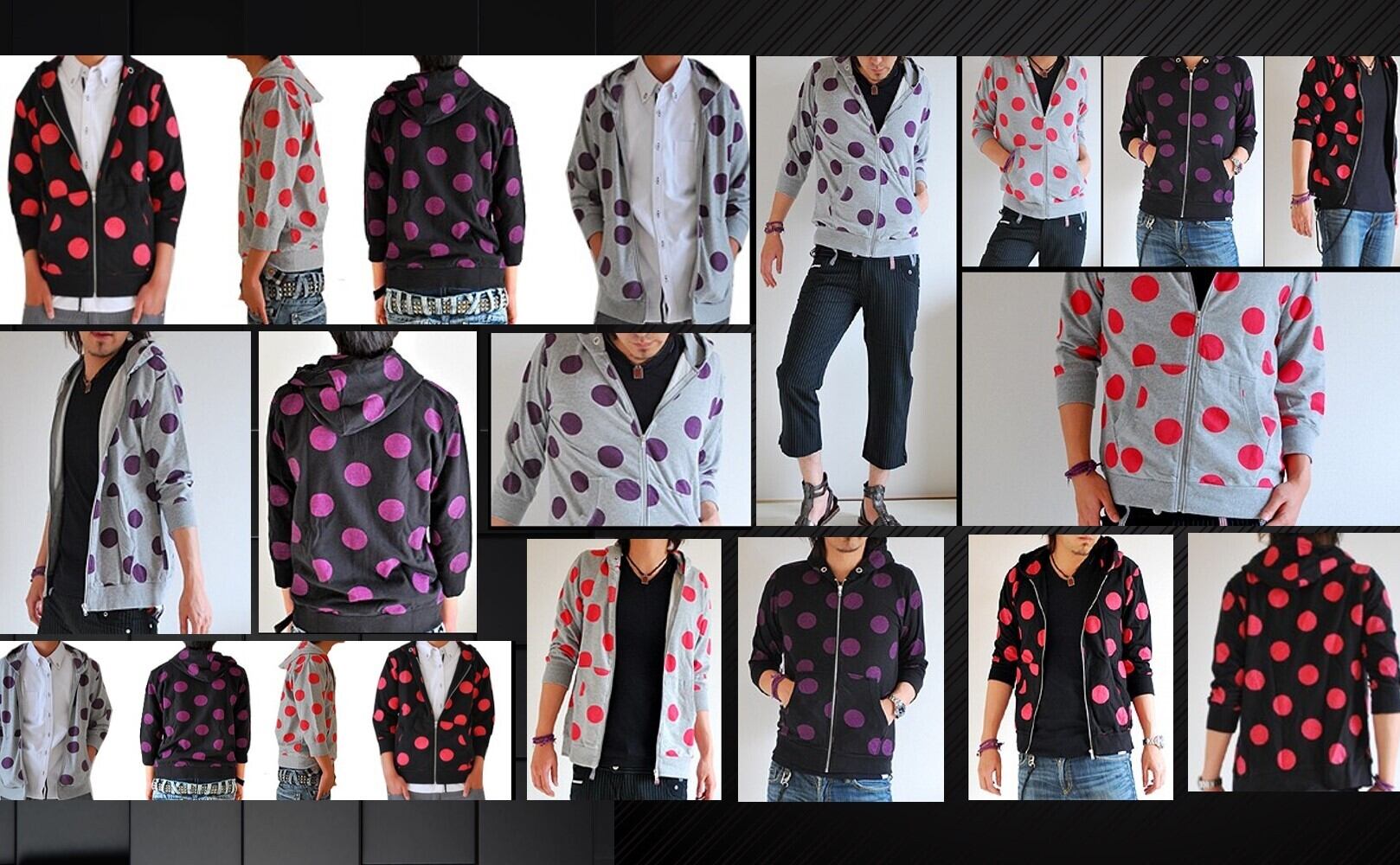存在感溢れるビックドット水玉柄の7分袖パーカーです。