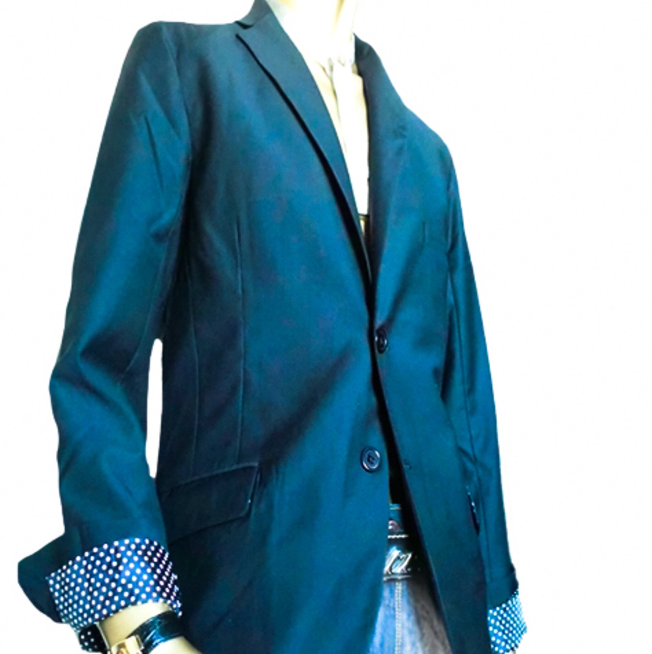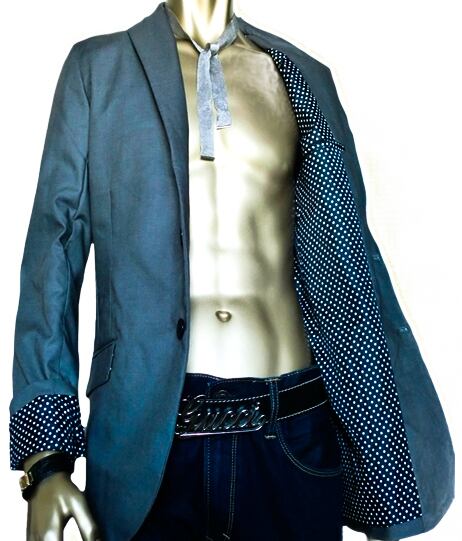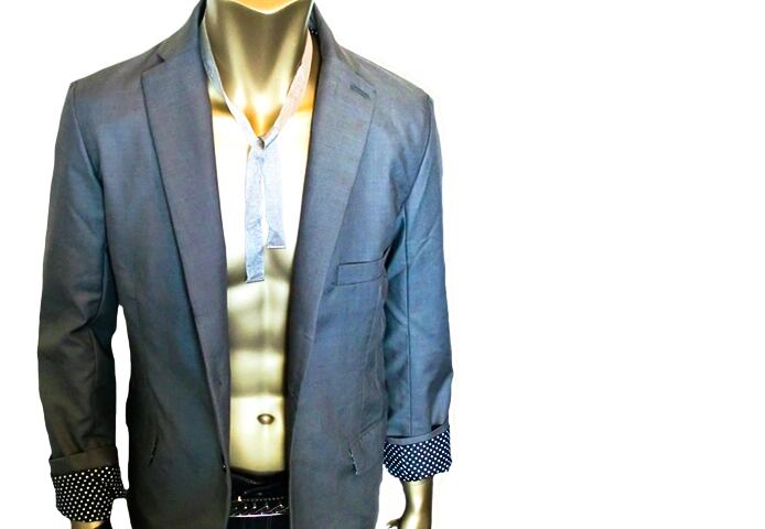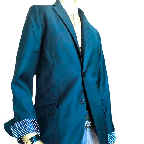 鮮やかな裏地ドット柄のテーラードジャケットです。