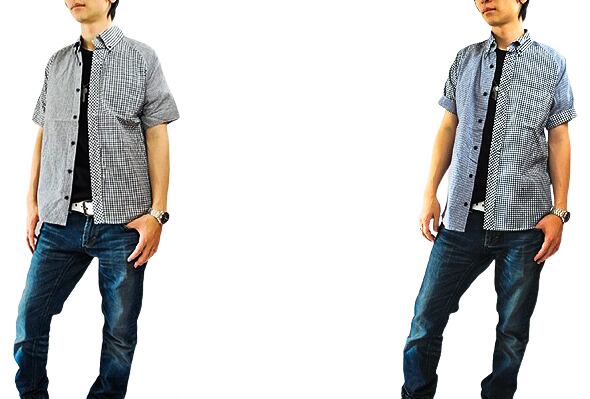 アシンメトリーのデザインに拘ったギンガムチェック半袖シャツです。